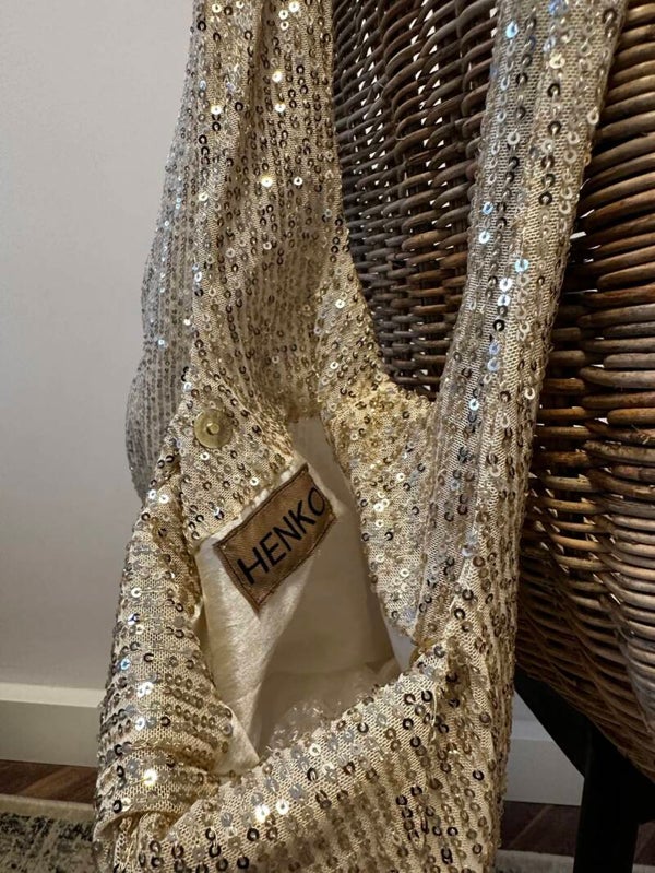 Lo que realmente lo hace especial es su material único: la tela de lentejuelas, que le da un toque brillante y sofisticado. Este bolso captura la luz de manera fascinante, aportando glamour y estilo en cada momento.